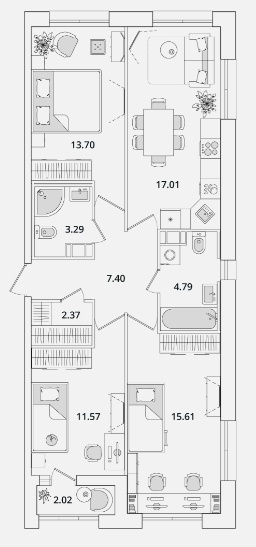 - квартиру также можно приобрести без отделки, что позволит воплотить в жизнь любое дизайнерское решение.